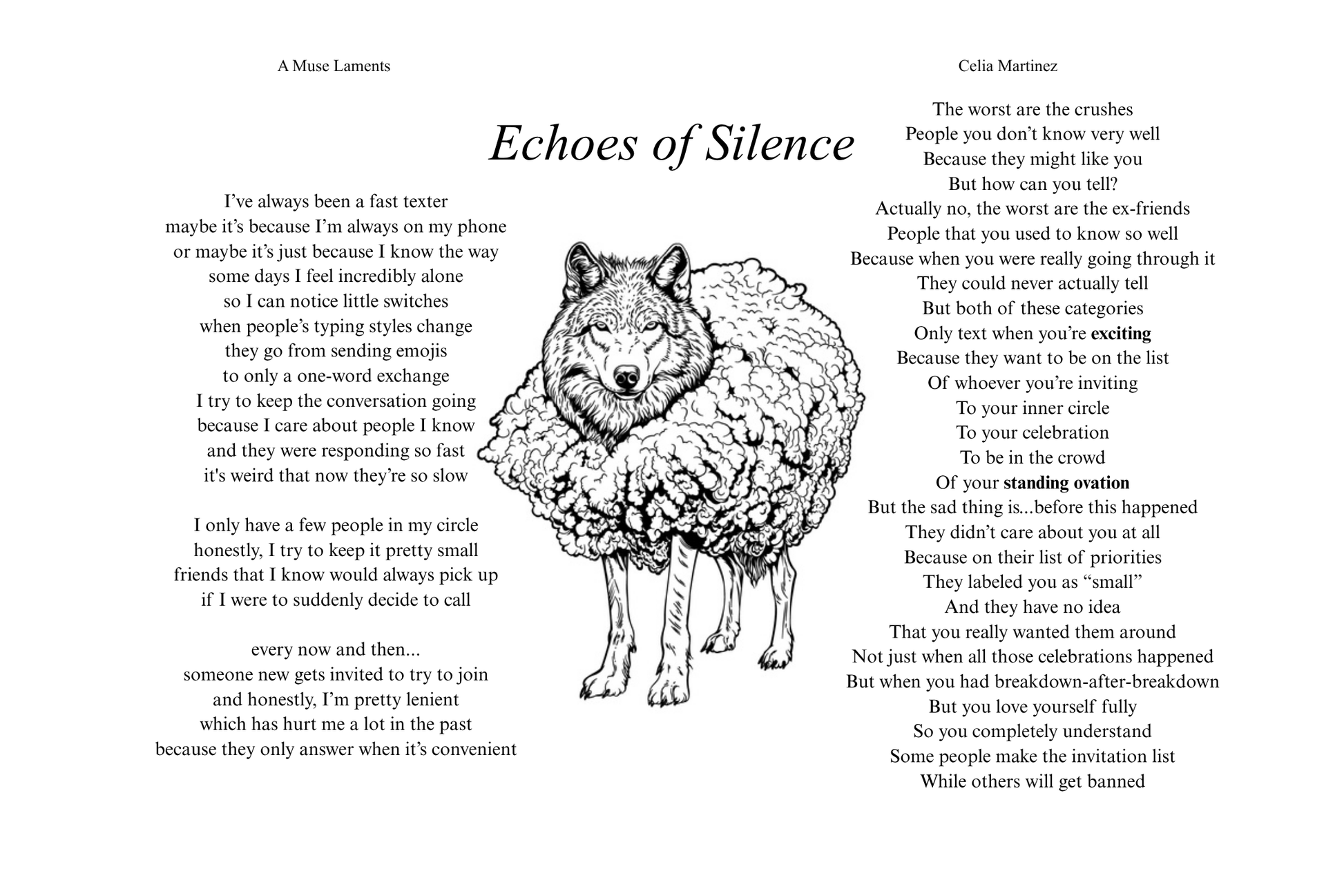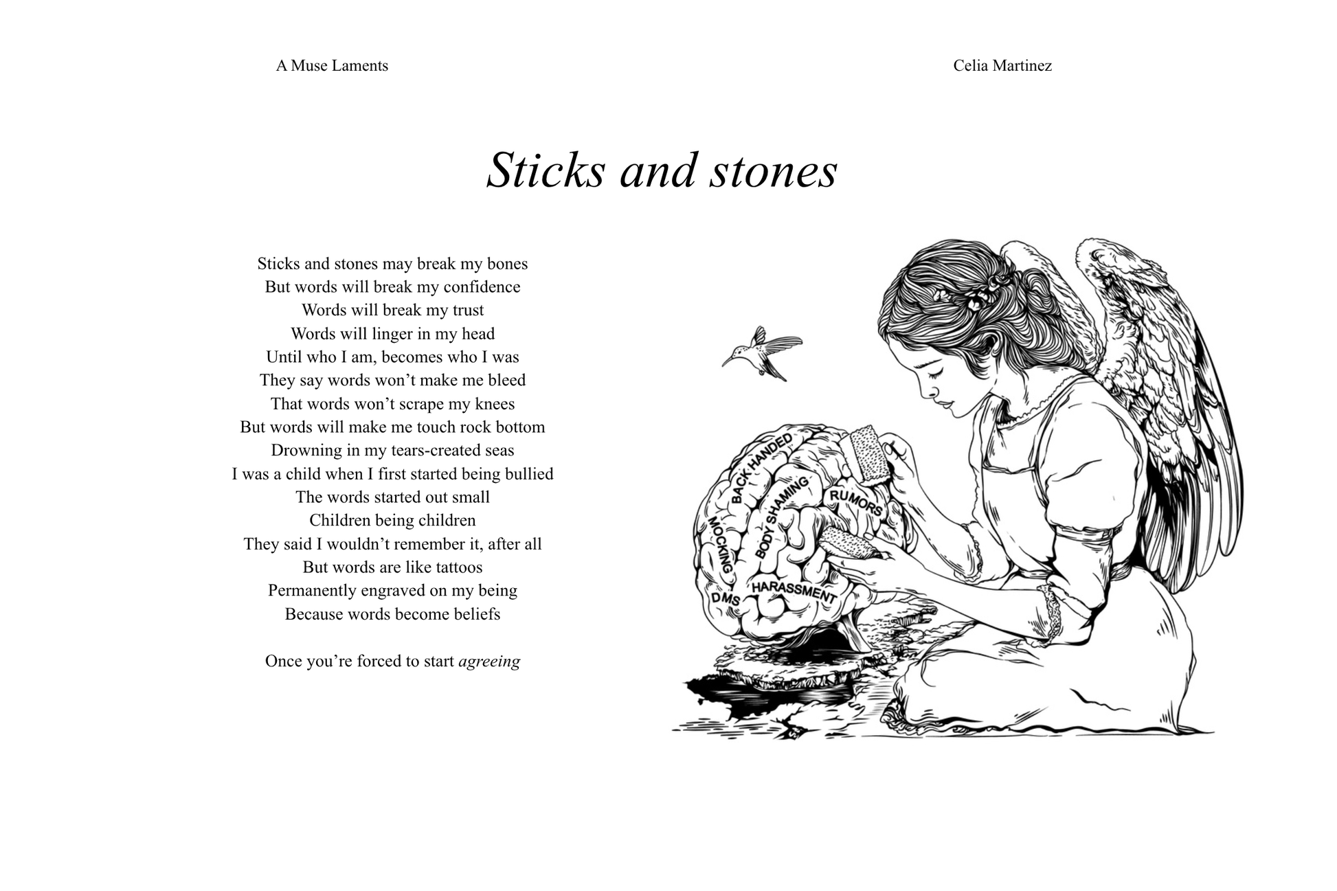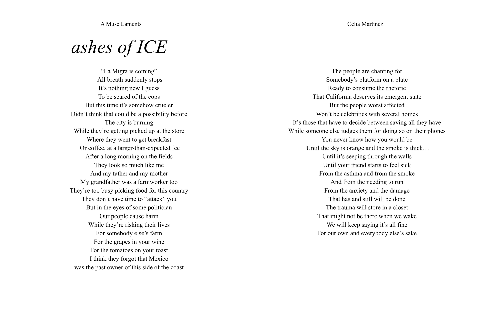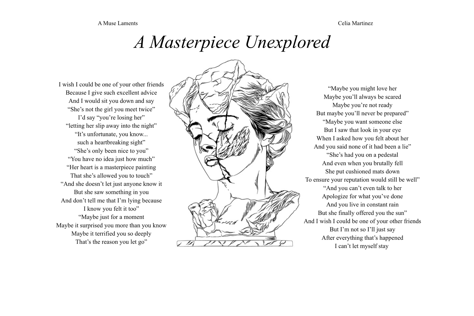 Celia expresses, validates, and radiates the emotional turmoil of the modern age that has resonated with her 5.1 million listeners, readers, and followers, A Muse Laments captures the zeitgeist of emotional expression on the internet , Celia Martinez proves to be a generational messenger giving voice to the voiceless hopeless romantics. Poem by poem she sculpts this generation into hopeful romantics.